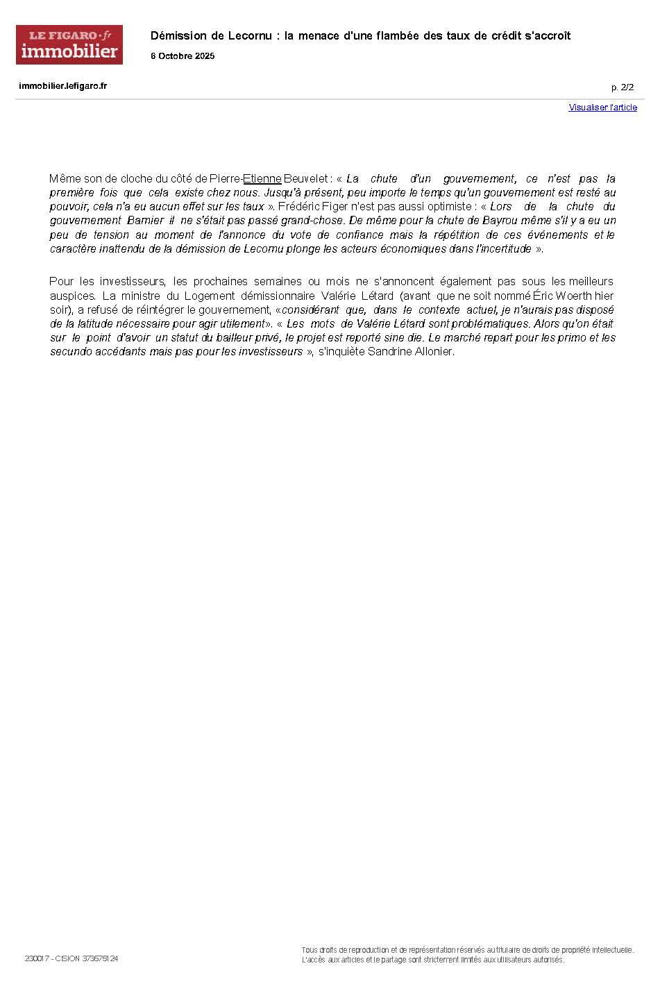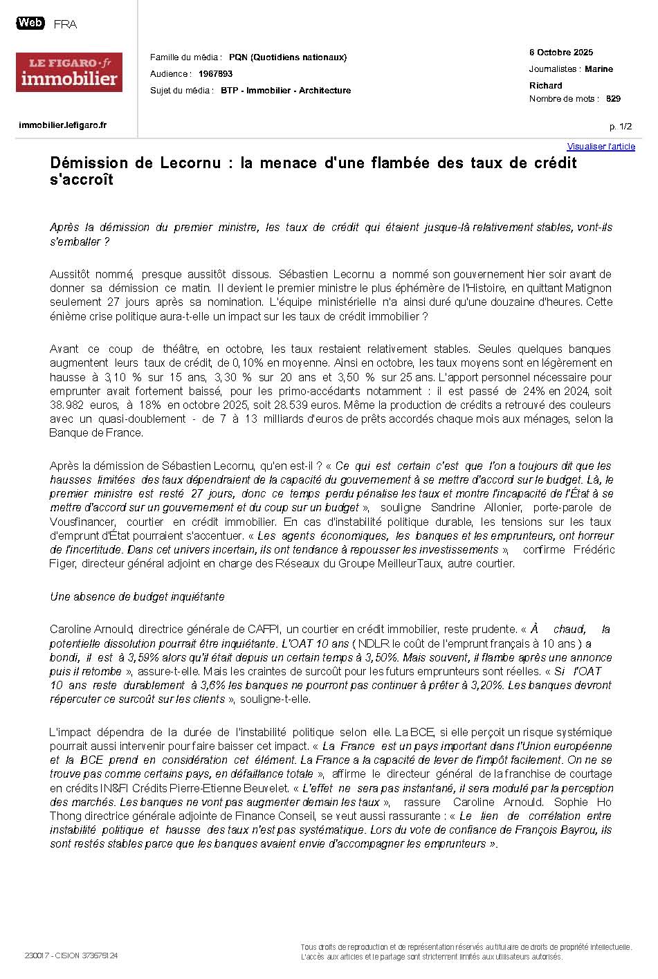 Démission de Lecornu : la menace d’une flambée des taux de crédit s’accroît